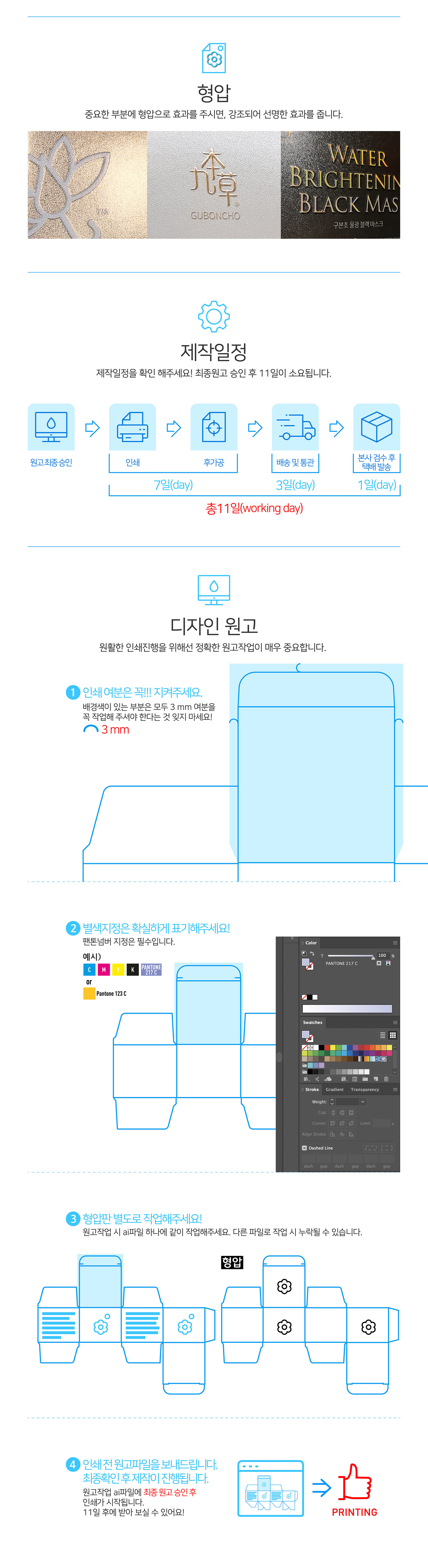 ・ 인쇄도수(옵셋인쇄) : CMYK+별색+코팅